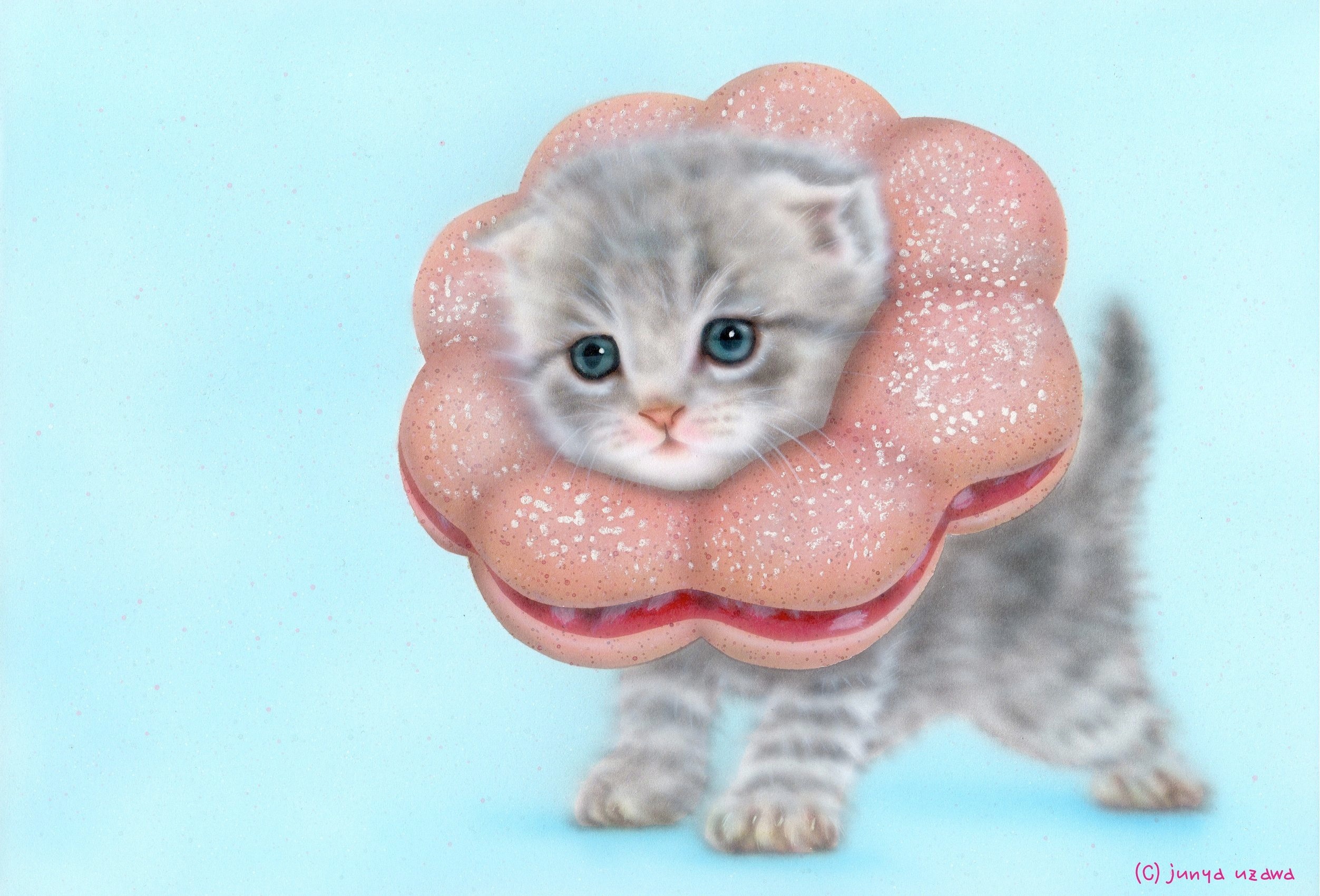 前作の「ポンデニャイオン:さくらんぼ」と比べ、ドーナツ部分は似ていますが、サンドされている具が多めなので描くのが楽しかったです。