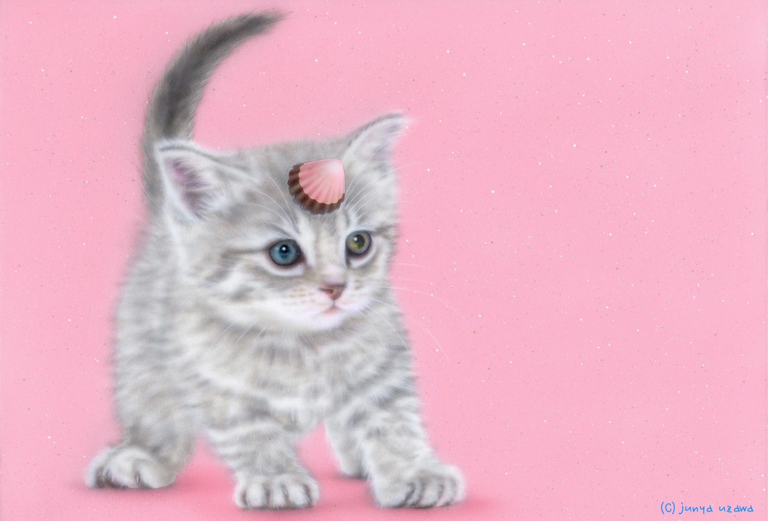久しぶりの子猫の絵です!そして、とんがりコーン、たけのこの里に続く「ゆにゃんこ:ユニャコーン」の第3弾です。