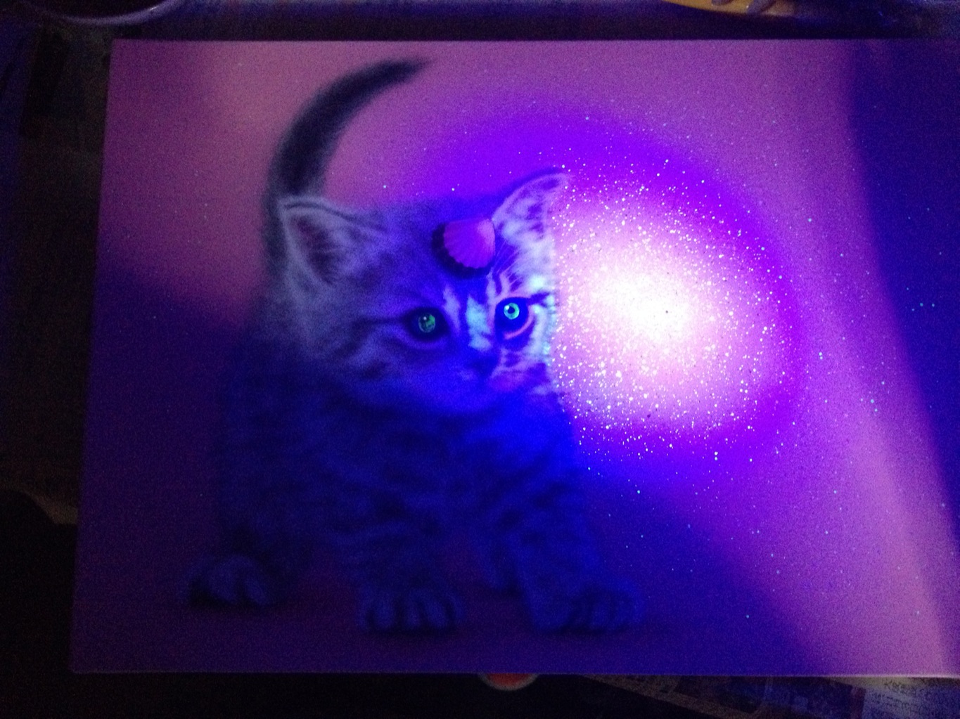 今回もオッドアイになっており、特殊ギミックとして、ブラックライトを当てると目が光るようになっています。
